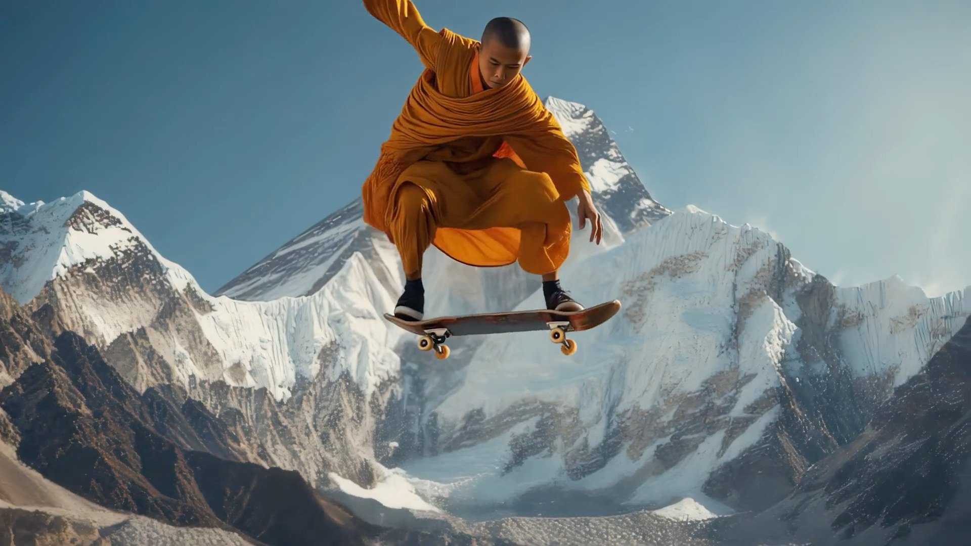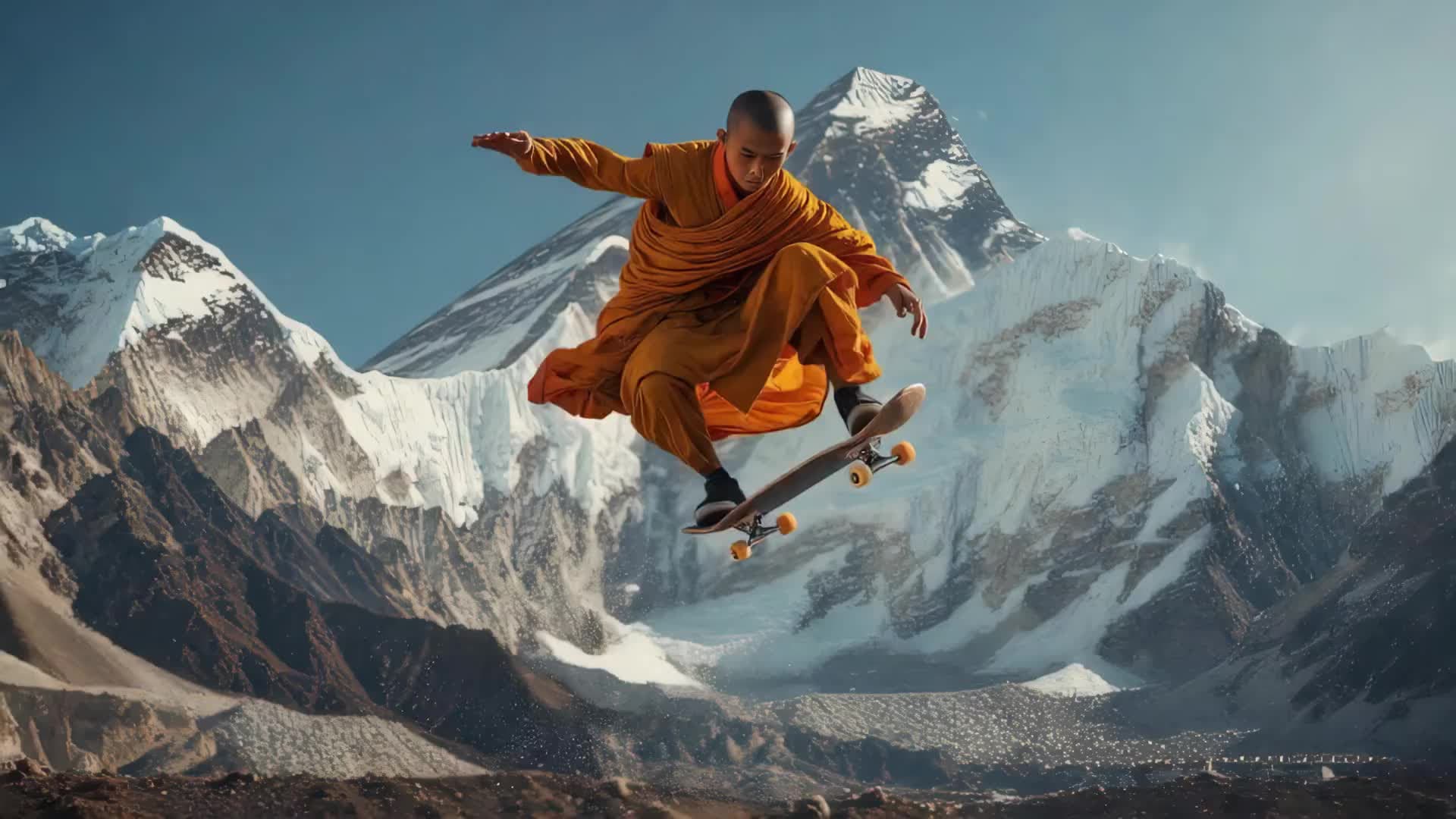 A skateboarder executing a perfect kickflip in mid-air, sunlight illuminating dust particles, gritty urban backdrop, detailed skateboard graphics, dynamic motion blur, hyperrealistic rendering, 8k resolution, cinematic lighting.