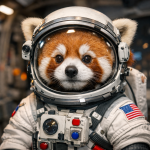 a hyperrealistic photo of a red panda wearing a tiny astronaut suit, 8k