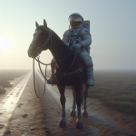3d render of an astronaut on a horse, astronaut sitting on a horse, wide angle cinematic, 4k resolution, no other animals